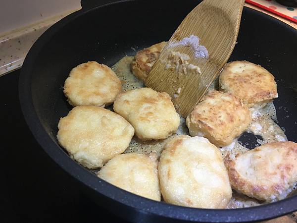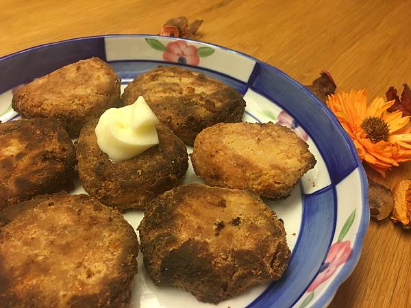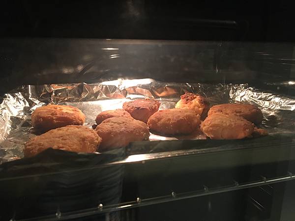 我家大廚(<--哥哥)很專業的把豆渣揉成薯餅狀,先炸再考,這方面就看大家口味嘍! Joah顧烤箱,一個不小心就焦了!專業的事還是得交由專業來!
