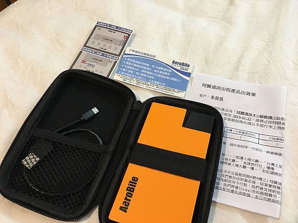 拿到的wifi稽核sim卡都在裡面。上面會註明姓名和領取的航廈。▼